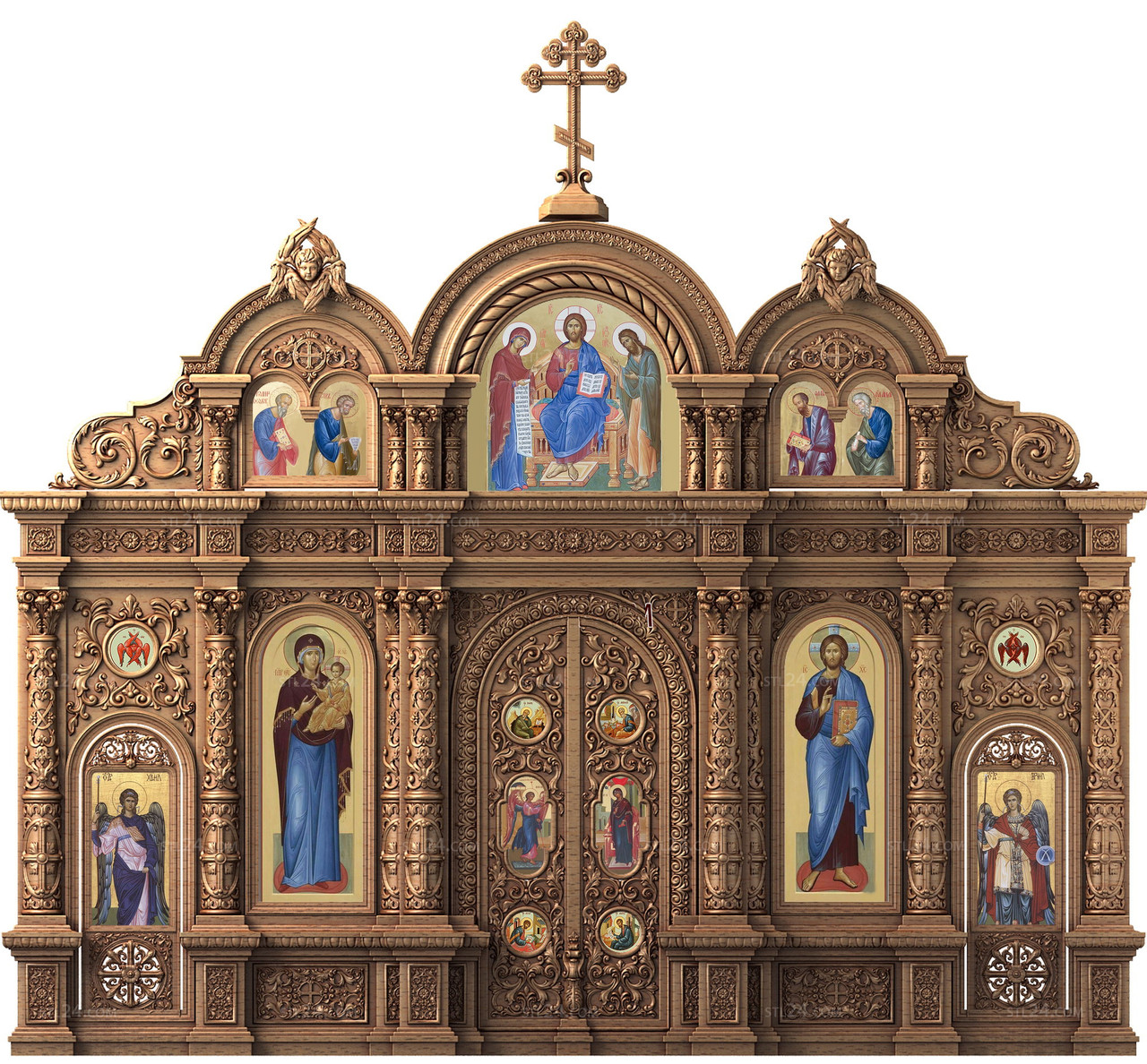 Для обустройства церкви или храма необходимо много рамок, картин, икон и, конечно же, Иконостас. Наша компания предлагает вам изготовить иконостас под заказ по индивидуальным размерам по доступной цене. Заказывая его у нас вы получаете товар из натурального материала – древесины, которая прослужит не один десяток лет.